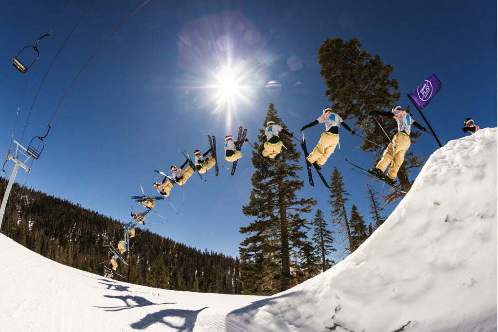 The Sierra Playgrounds terrain parks are built for progression — start small, work your way up and always ride within your ability. Always make a plan for each feature, inspect it before use, ride and respect others by taking turns, clearing landings quickly and obeying all signs and closures. Use of Freestyle Terrain exposes you to the risk of serious injury or death. Inverted aerials are not recommended. You assume the risk.