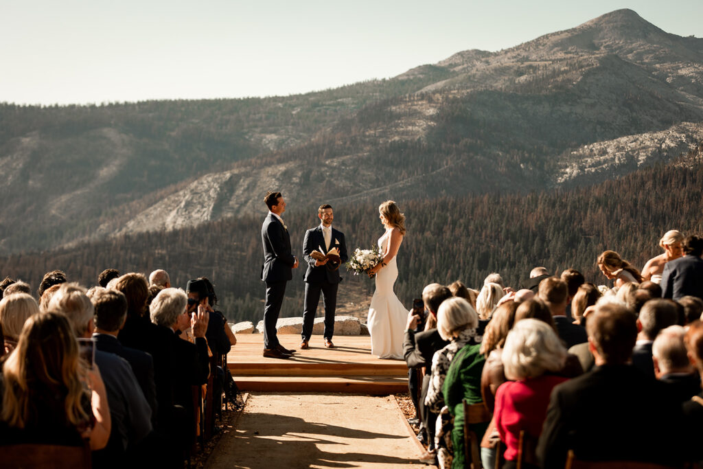 From June through September for full-service events, and elopement options available year-round (both on and off the snow), couples can exchange vows at one of Lake Tahoe’s stunning ceremony sites, from the Scenic Overlook, framed by the majestic Pyramid Peak, to more easily accessible settings in the base area. Receptions unfold in the Solstice Plaza, complete with access to the Solstice Eatery + Corkscrew Bar, and endless possibilities for personalized set-up + décor. With the resort closed to the public in the summer months, you + your guests will have the mountain to yourselves. A private paradise awaits for your special day!