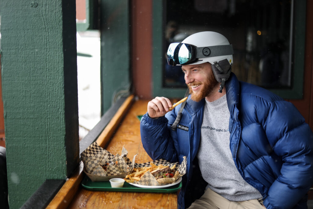 The Corkscrew Bar located within the Solstice Eatery features signature cocktails. On sunny days, order from the outdoor bar windows + sip your libation in the fresh mountain air on Solstice Plaza!