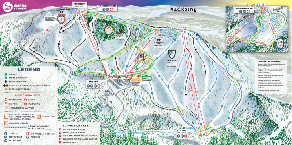 Sierra mountain environments change constantly. Conditions, weather and terrain can shift throughout the day — not all hazards are marked. It’s important prior to your visit that you understand the mountain rules and regulations. Please be responsible, stay aware, use good judgment, obey signage, ride to your ability and enjoy your day knowing that your actions help keep yourself + everyone safer.